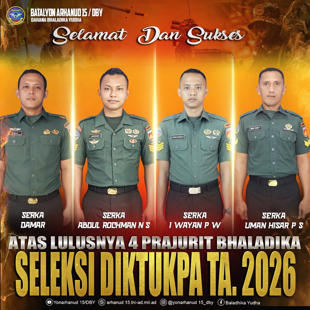 Selamat & Sukses atas Kelulusan Mengikuti Diktukpa TNI AD Gelombang 1 TA 2026