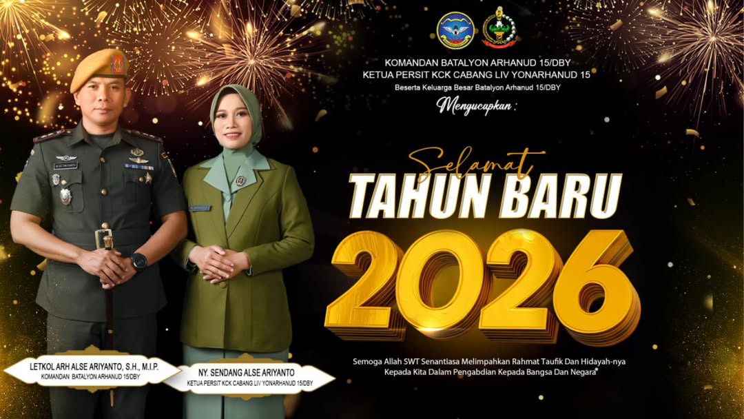 Semarang — Batalyon Arhanud 15/DBY menggelar kegiatan Malam Tahun Baru yang berlangsung di Garasi LDK Yonarhanud 15/DBY. Kegiatan ini dihadiri langsung oleh Komandan Batalyon Arhanud 15/DBY Letkol Arh Alse Ariyanto, S.H., M.I.P. beserta Ketua Persit KCK Cabang LIV Yonarhanud 15 PD IV/Diponegoro Ny. Sendang Alse Ariyanto, serta prajurit, Persit, dan keluarga besar satuan. Rabu (31/12/2025) Rangkaian kegiatan diawali dengan doa bersama sebagai ungkapan rasa syukur dan harapan agar di tahun yang baru seluruh prajurit beserta keluarga selalu diberikan keselamatan, kesehatan, dan keberkahan dalam menjalankan tugas. Selanjutnya dilaksanakan berbagai perlombaan yang…