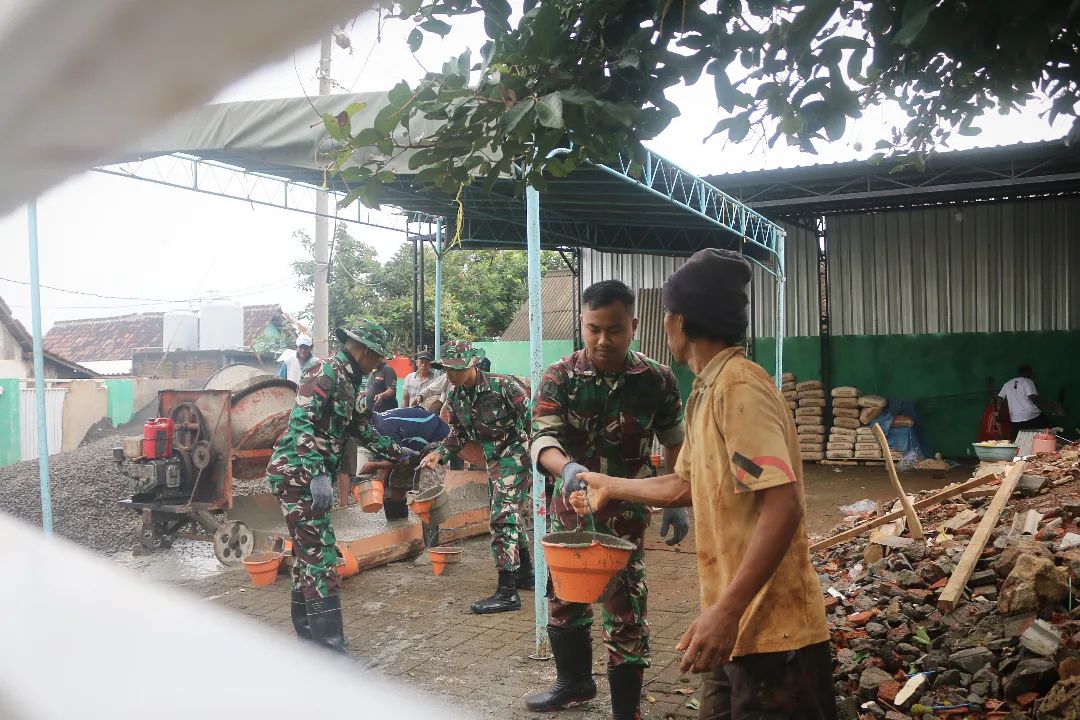 Semarang – Sebagai bentuk kemanunggalan TNI dan rakyat serta upaya pembinaan teritorial terbatas, puluhan prajurit Batalyon Arhanud 15/DBY bersama warga melaksanakan karya bakti pengecoran lantai 2 Masjid Al-Munir Jangli Gabeng, Candisari Kota Semarang. Minggu (08/01/2023)