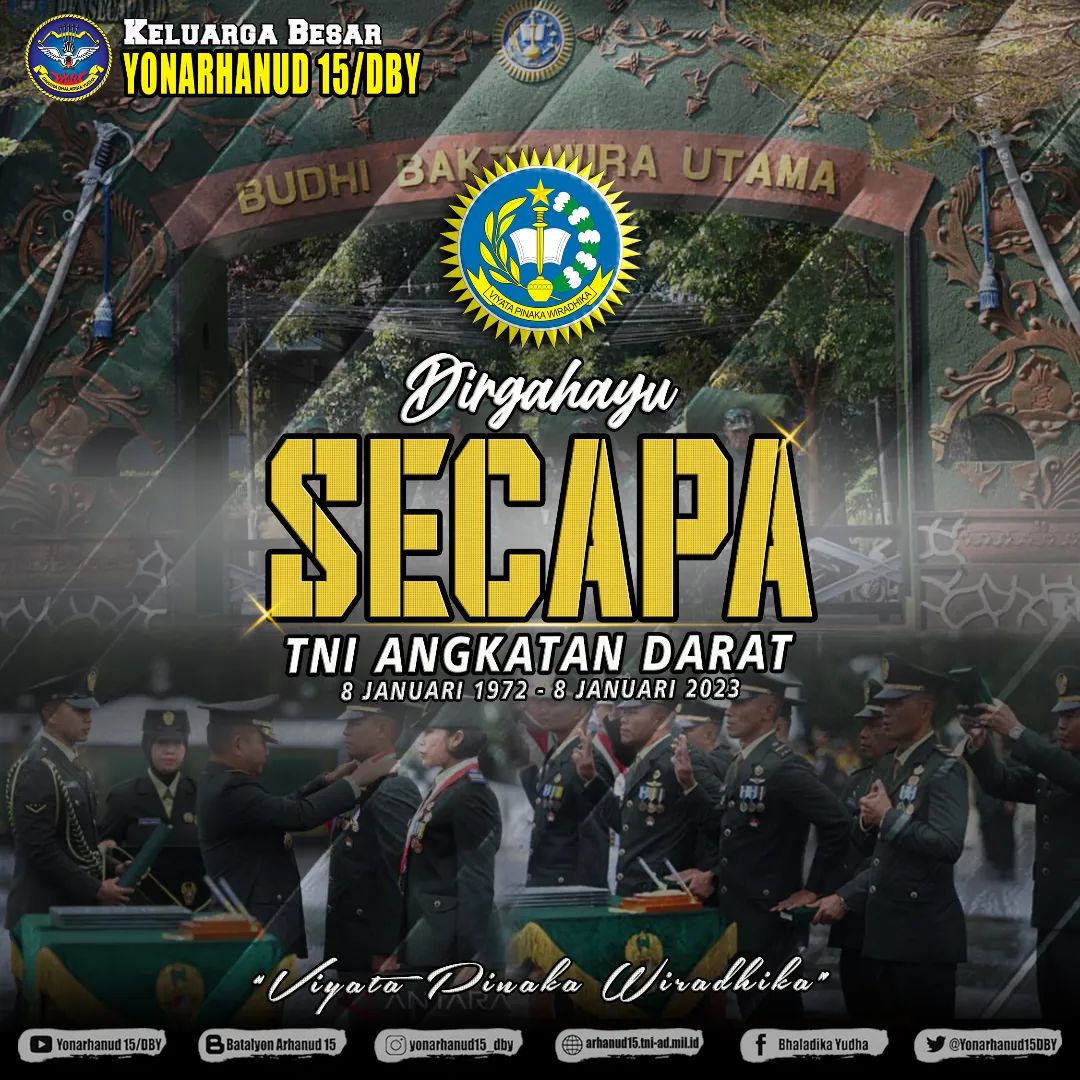 Keluarga Besar Batalyon Arhanud 15/DBY Mengucapkan Dirgahayu Secapa TNI AD