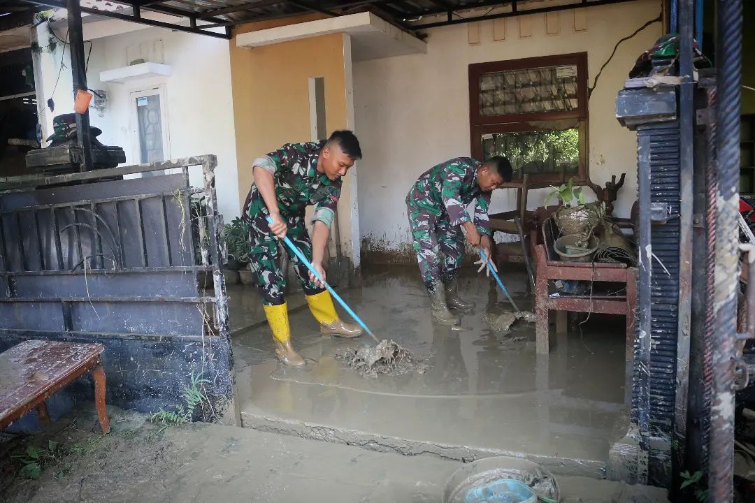 Membantu Mengatasi Kesulitan Warga, Prajurit Yonarhanud 15/DBY Gotong Royong Bersihkan Rumah Warga Akibat Banjir dan Pembuatan Tanggul Darurat Semarang – Puluhan Prajurit Yonarhanud 15/DBY, bersama Kodim 0733/Kota Semarang, dan Polretabes Kota Semarang, serta unsur masyarakat lainnya malaksanakan Gotong Royong bersihkan rumah warga Akibat Banjir karena tanggul yang jebol pada Sabtu (07/01/2022) di kawasan Perumahan Dinar Indah Tembalang, Kota Semarang. Selain membantu membersihkan rumah warga, personel juga membantu proses pembuatan tanggul darurat dengan menggunakan sesek bambu yang akan diisi karung-karung pasir untuk mengatisipasi adanya banjir susulan.