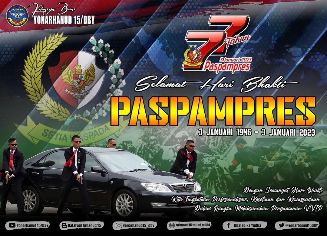 Keluarga Besar Batalyon Arhanud 15/DBY Mengucapkan Selamat Hari Bhakti Paspampres Ke 77