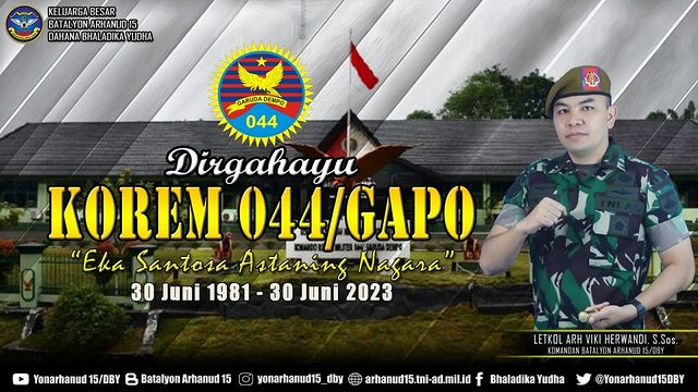 Dirgahayu Korem 044/GAPO Juli 10, 2023Juli 10, 2023 adminarh15 Keluarga Besar Batalyon Arhanud 15/DBY Mengucapkan Dirgahayu Korem 044/GAPO