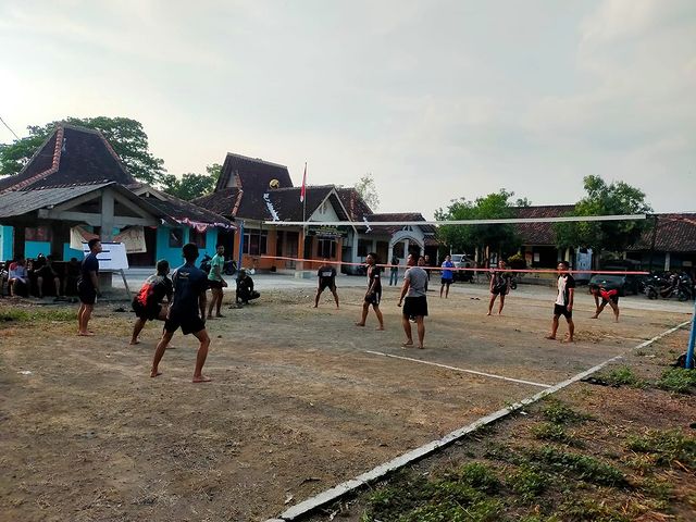 Grobogan – Sorenya prajurit Satgas TMMD dari Yonarhanud 15/DBY, tetap berolahraga dengan warga setempat usai melaksanakan pengerjaan sasaran fisik membuat corblok jalan penghubung dari RT 5/RW 1 ke RT 2/RW 2 Dusun Krajan, Desa Cangkring, Kec. Tego Wanu Kab. Grobogan, Sabtu 15/7/2023.