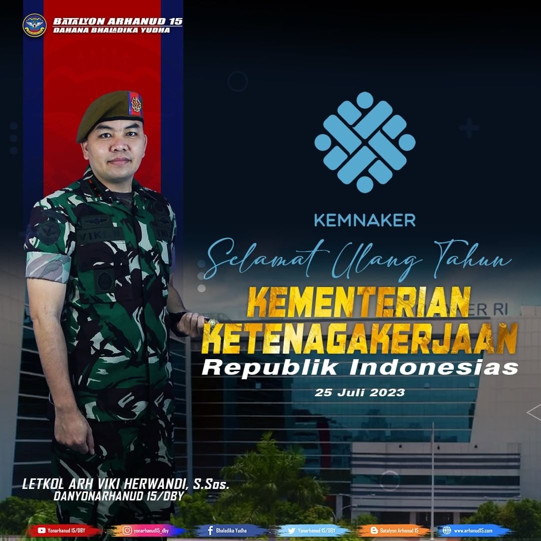 Keluarga Besar Batalyon Arhanud 15/DBY Mengucapkan Selamat Ulang Tahun Kemnaker Republik Indonesia