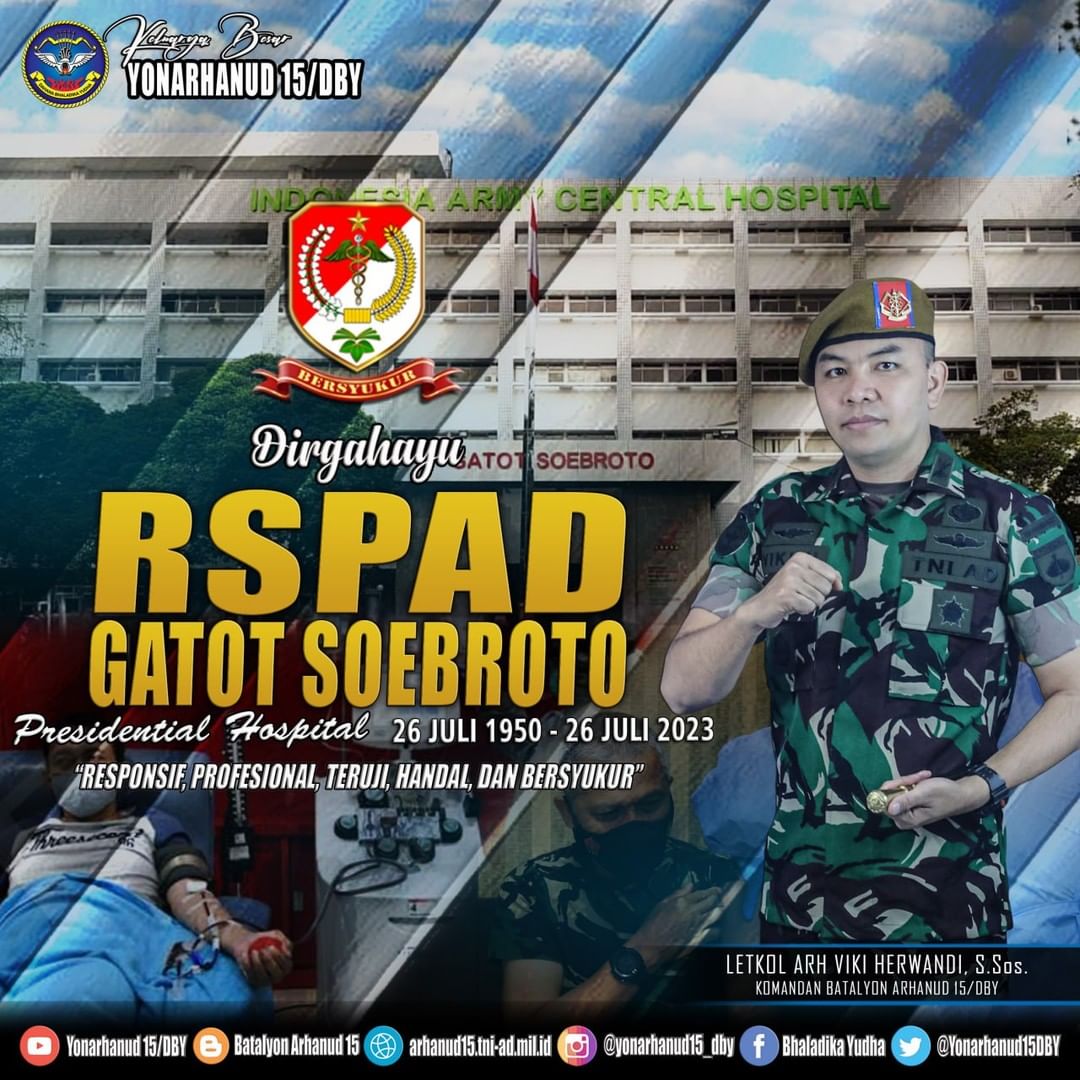 Keluarga Besar Batalyon Arhanud 15/DBY Mengucapkan Dirgahayu RSPAD Gatot Soebroto