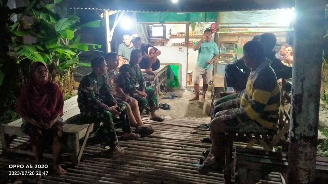 Warung kopi menjadi sarana komunikasi social yang menarik bagi prajurit Batalyon Arhanud 15/DBY Satgas TMMD BKO Kodim Grobogan, Sabtu 22/7/2023.