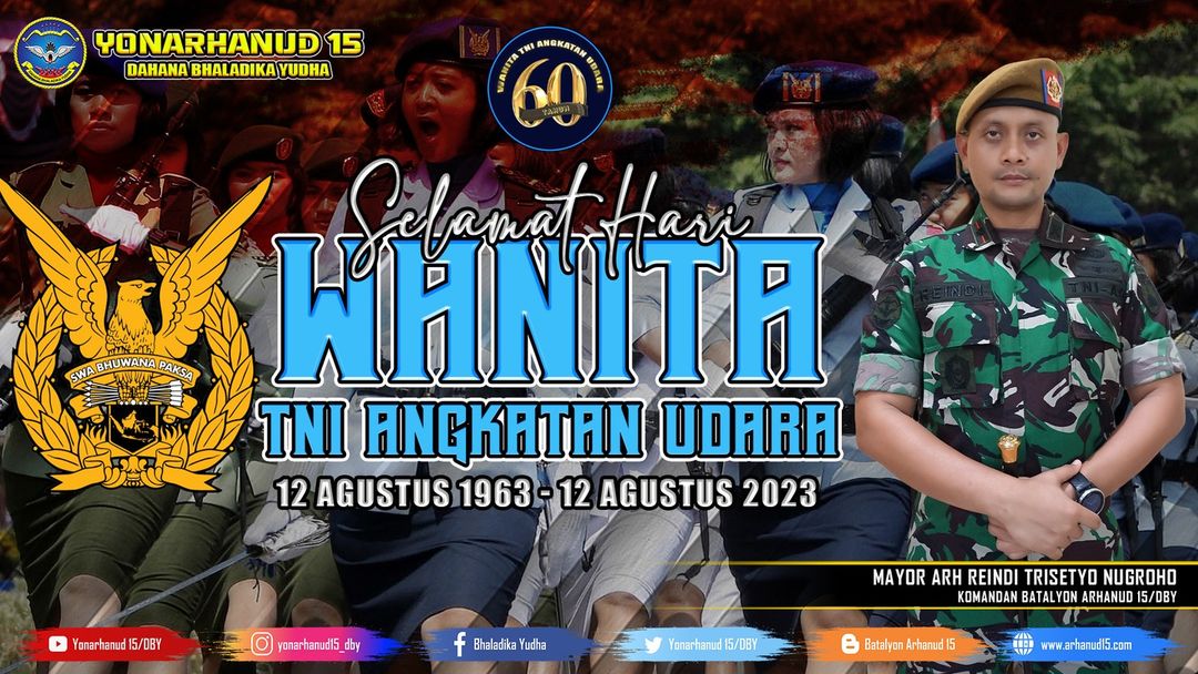 Dirgahayu Wanita TNI Angkatan Udara Agustus 30, 2023 adminarh15 Keluarga Besar Batalyon Arhanud 15/DBY Mengucapkan Dirgahayu Wanita TNI Angkatan Udara