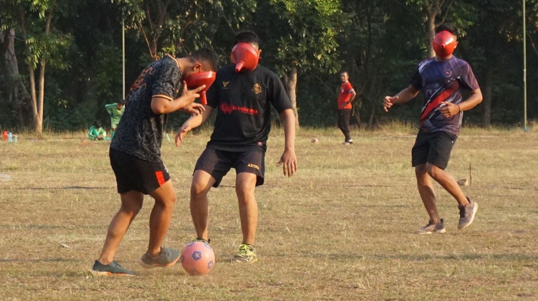 Semarang – Sepak bola dengan muka tertutup corong plastik masih menjadi pilihan olahraga yang dipertandingkan antar prajurit Yonarhanud 15/DBY dalam rangka memperingati HUT Ke-78 Republik Indonesia tahun ini, Selasa 15/8/2023.