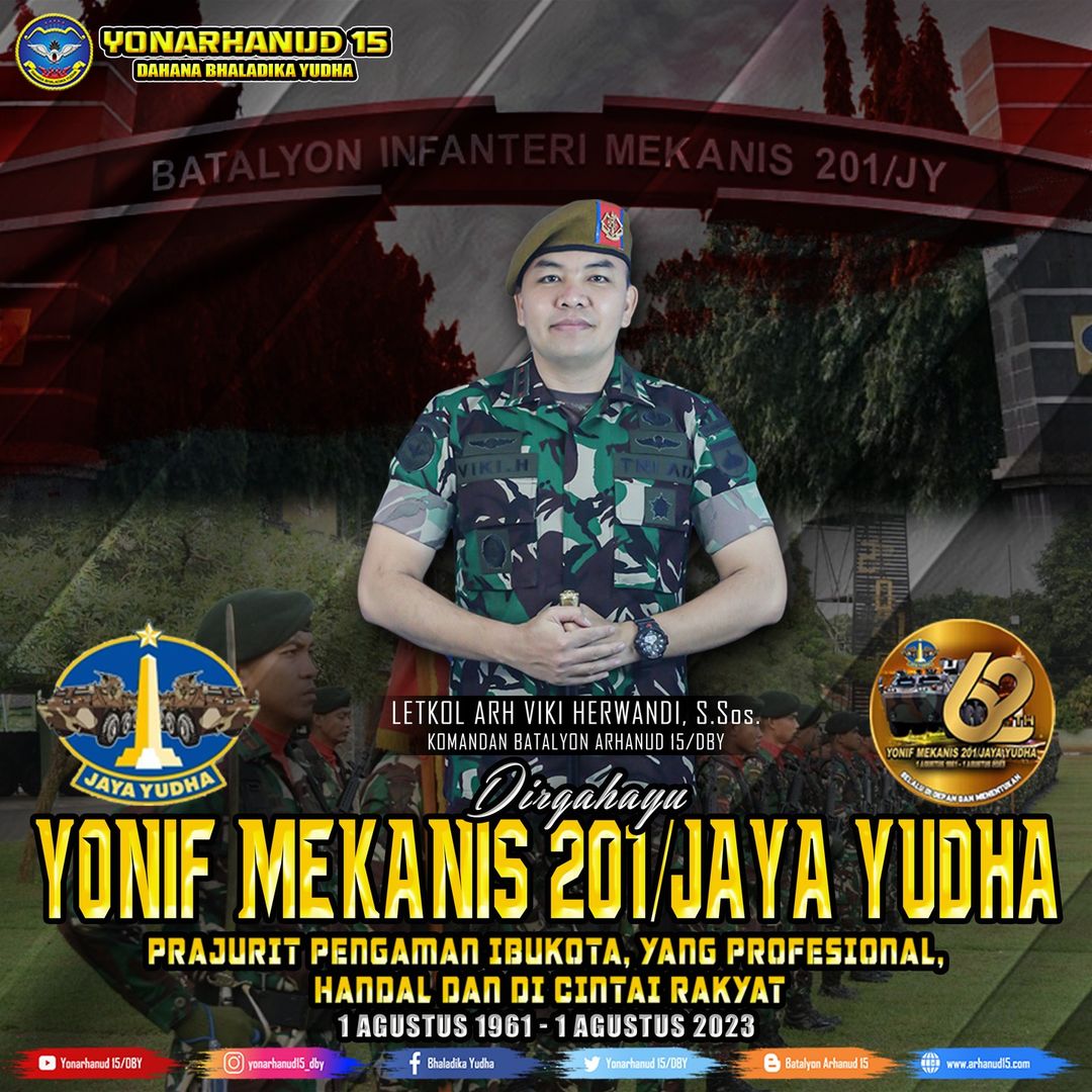 Keluarga Besar Batalyon Arhanud 15/DBY Mengucapkan Dirgahayu Yonif Mekanis 201/Jaya Yudha