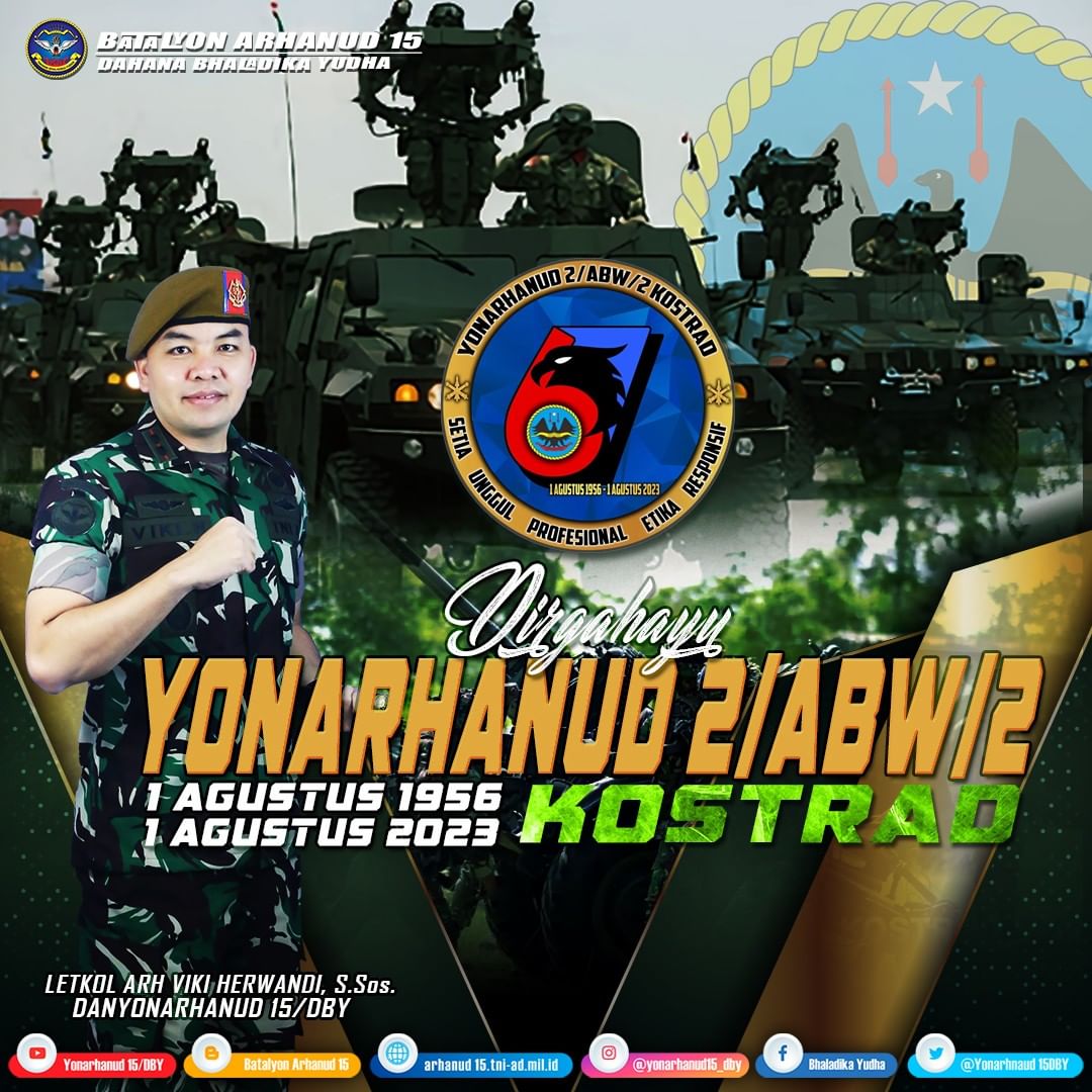 Keluarga Besar Batalyon Arhanud 15/DBY Mengucapkan Dirgahayu Yonarhanud 2/ABW/2/Kostrad