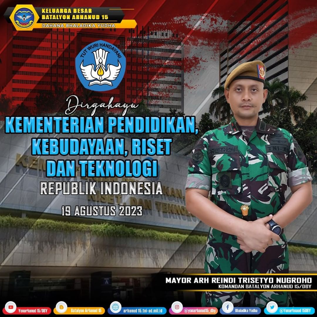 Keluarga Besar Batalyon Arhanud 15/DBY Mengucapkan Dirgahayu Kementerian Pendidikan, Kebudayaan, Riset, dan Teknologi RI