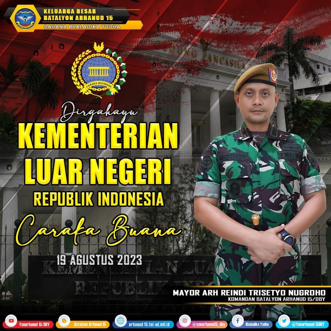 Keluarga Besar Batalyon Arhanud 15/DBY Mengucapkan Dirgahayu Kementerian Luar Negeri RI