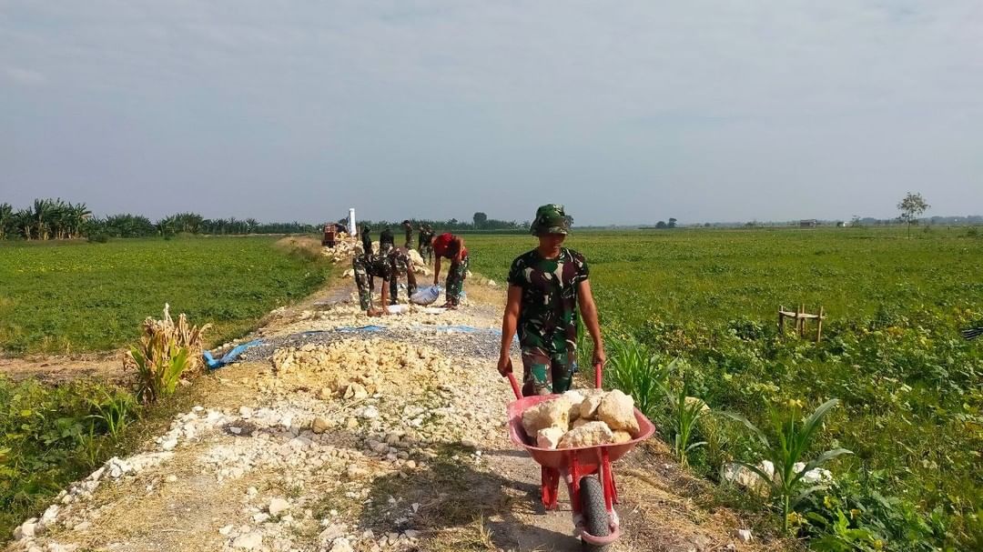 Grobogan – Paginya Prajurit Yonarhanud 15/DBY Satgas TNI Manunggal Membangun Desa Reguler Ke-117 BKO Kodim Grobogan, masih dengan semangat Bhaladika dalam pengerjaan sasaran fisik di Desa Cangkring, Kecamatan Tegowanu, Grobogan – Jawa Tengah, Rabu 2/8/2023.