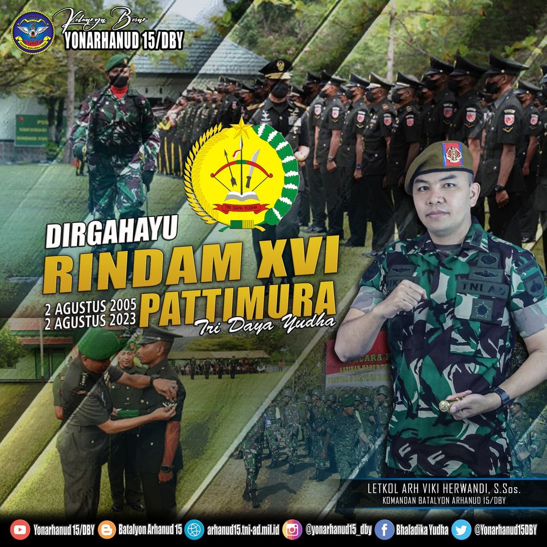 Keluarga Besar Batalyon Arhanud 15/DBY Mengucapkan Dirgahayu Rindam XVI/Pattimura