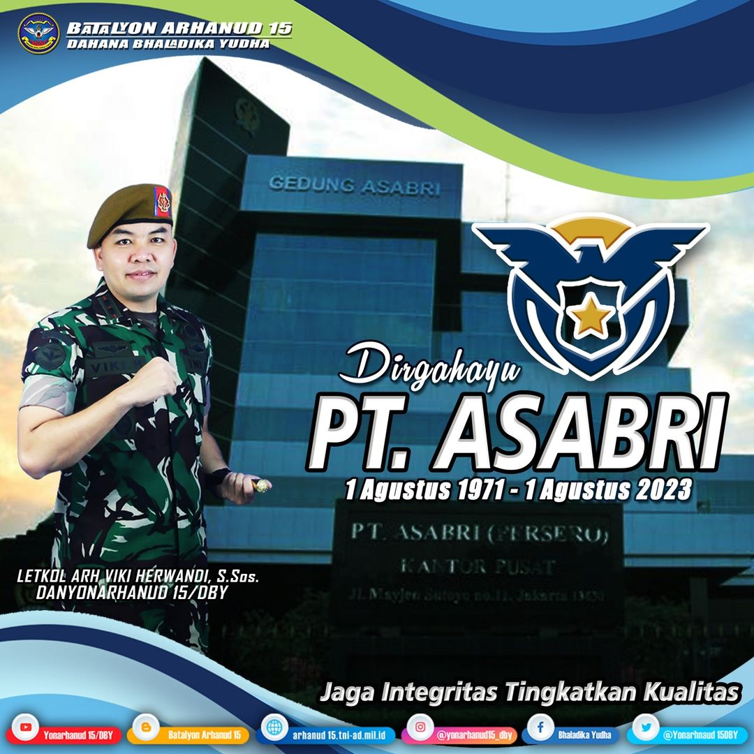 Keluarga Besar Batalyon Arhanud 15/DBY Mengucapkan Dirgahayu PT. ASABRI