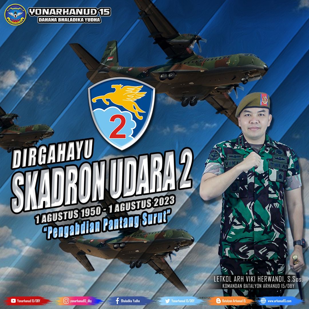 Keluarga Besar Batalyon Arhanud 15/DBY Mengucapkan Dirgahayu Skadron Udara 2