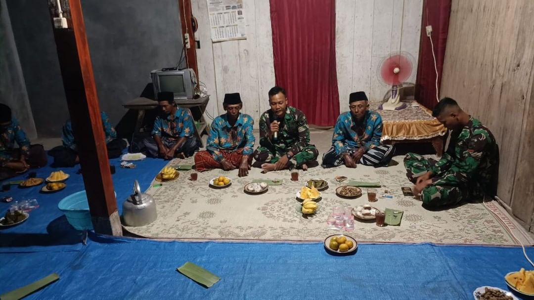 Menjalin komsos dengan warga masyarakat, personil Yonarhanud 15/DBY yang tergabung dalam Satgas TMMD BKO Kodim Grobogan ikuti kegiatan Yasinan dirumah warga binaan lokasi TMMD, 4 Agustus 2023.
