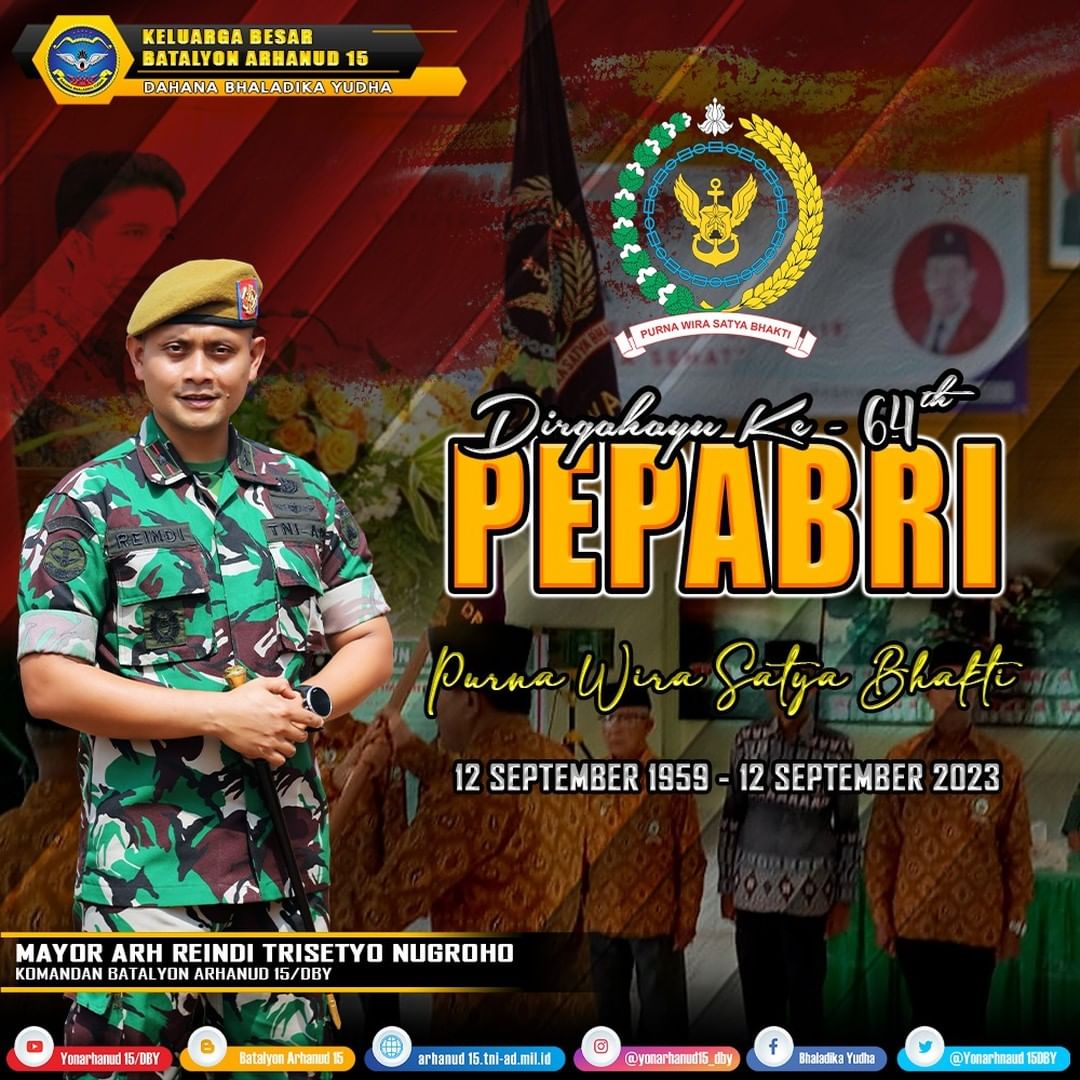 Keluarga Besar Batalyon Arhanud 15/DBY Mengucapkan Dirgahayu PEPABRI