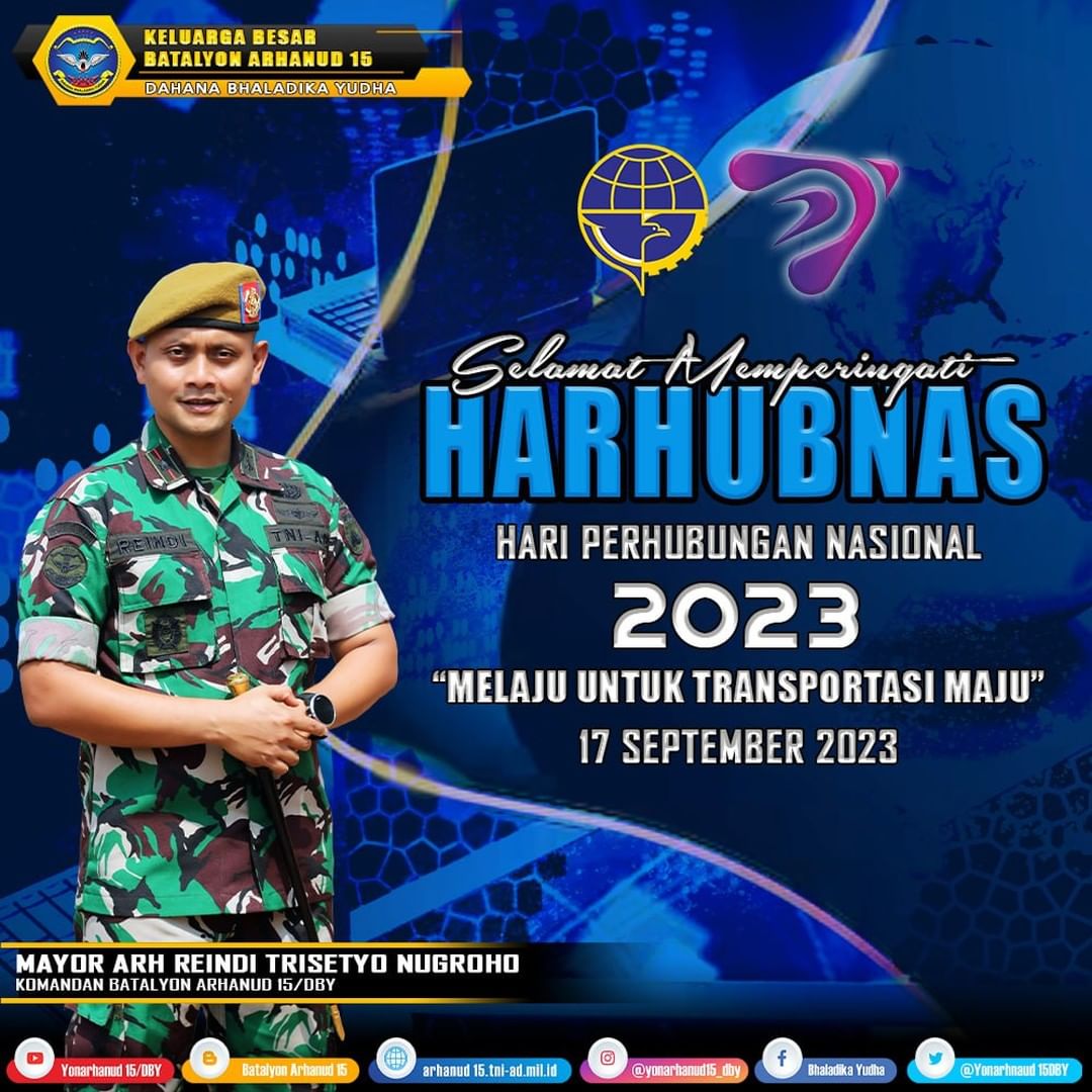 Keluarga Besar Batalyon Arhanud 15/DBY Mengucapkan Selamat Hari Perhubungan Nasional (HARHUBNAS) 2023