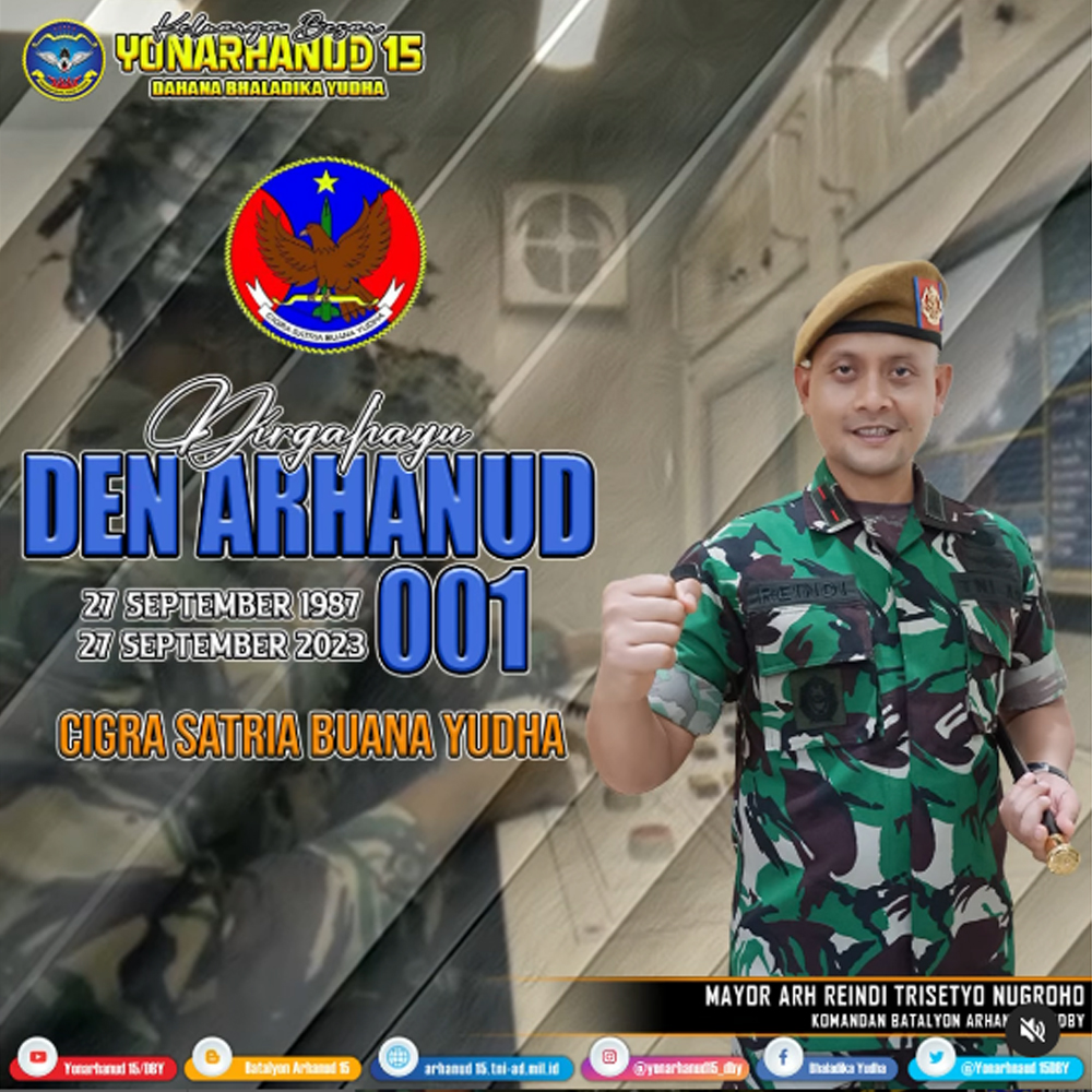 Keluarga Besar Batalyon Arhanud 15/DBY Mengucapkan Dirgahayu Denarhanud 001/CSBY