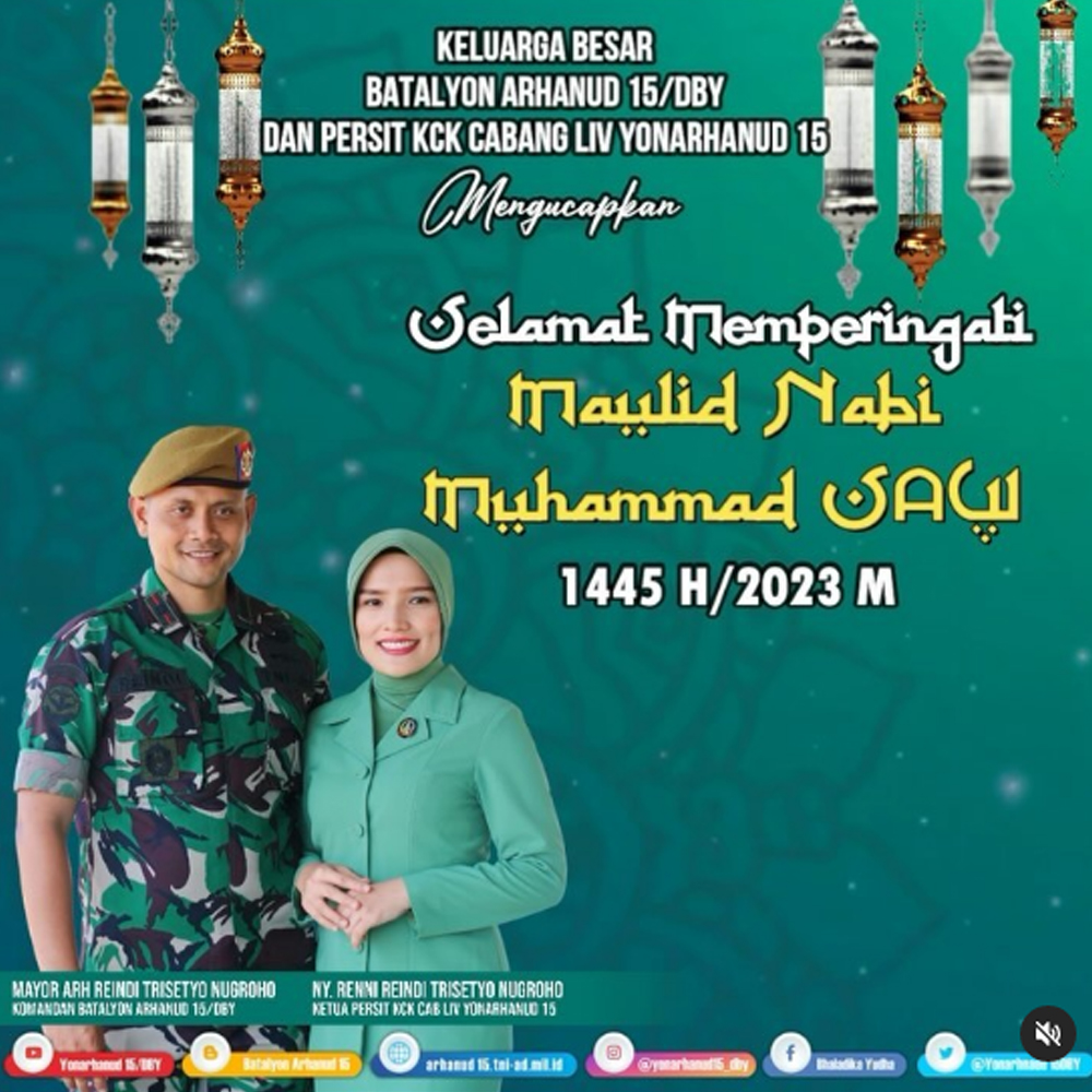 Keluarga Besar Batalyon Arhanud 15/DBY Mengucapkan Selamat Memperingati Maulid Nabi Muhammad SAW