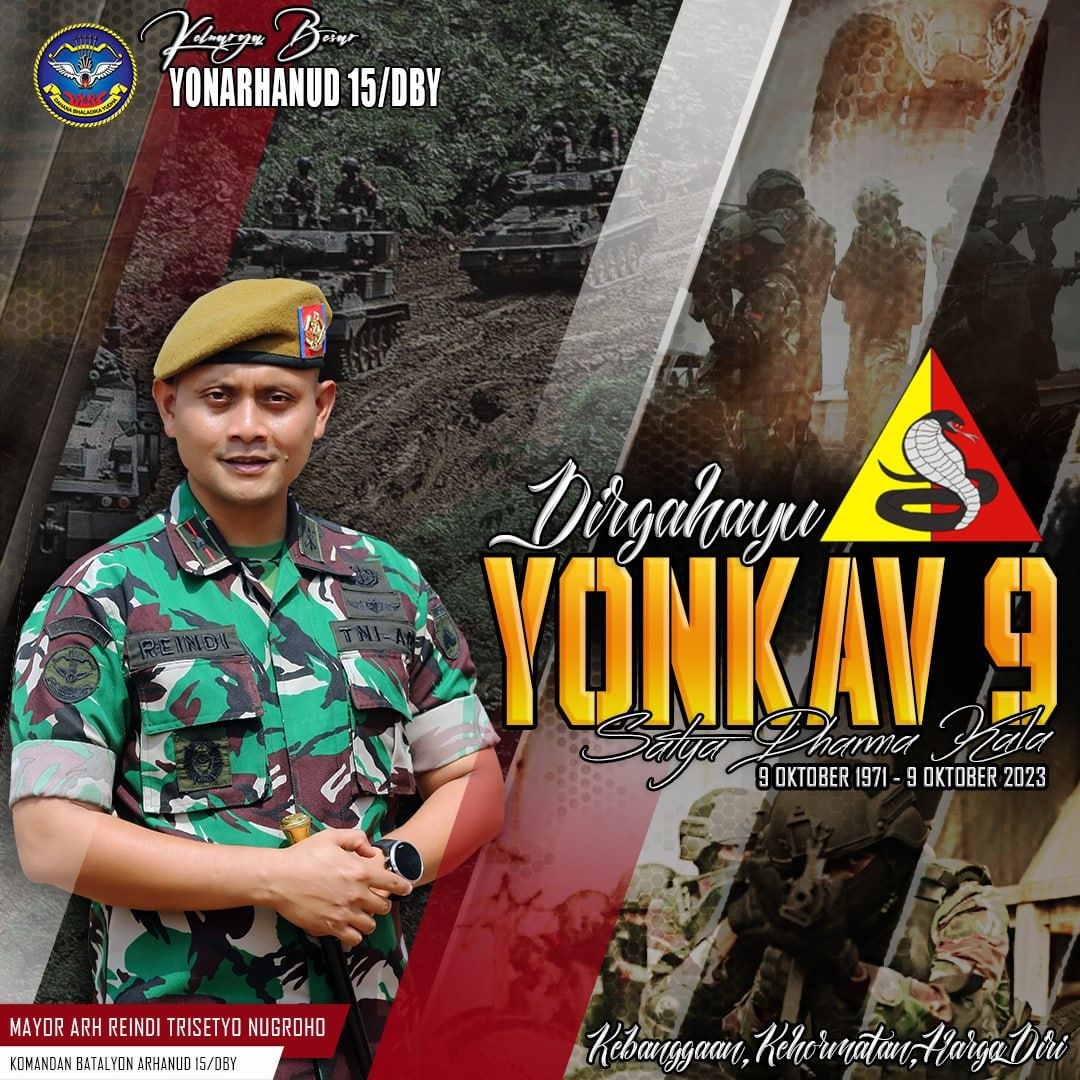 Dirgahayu Yonkav 9/SDK Oktober 16, 2023Oktober 16, 2023 adminarh15 Keluarga Besar Batalyon Arhanud 15/DBY Mengucapkan Dirgahayu Yonkav 9/SDK