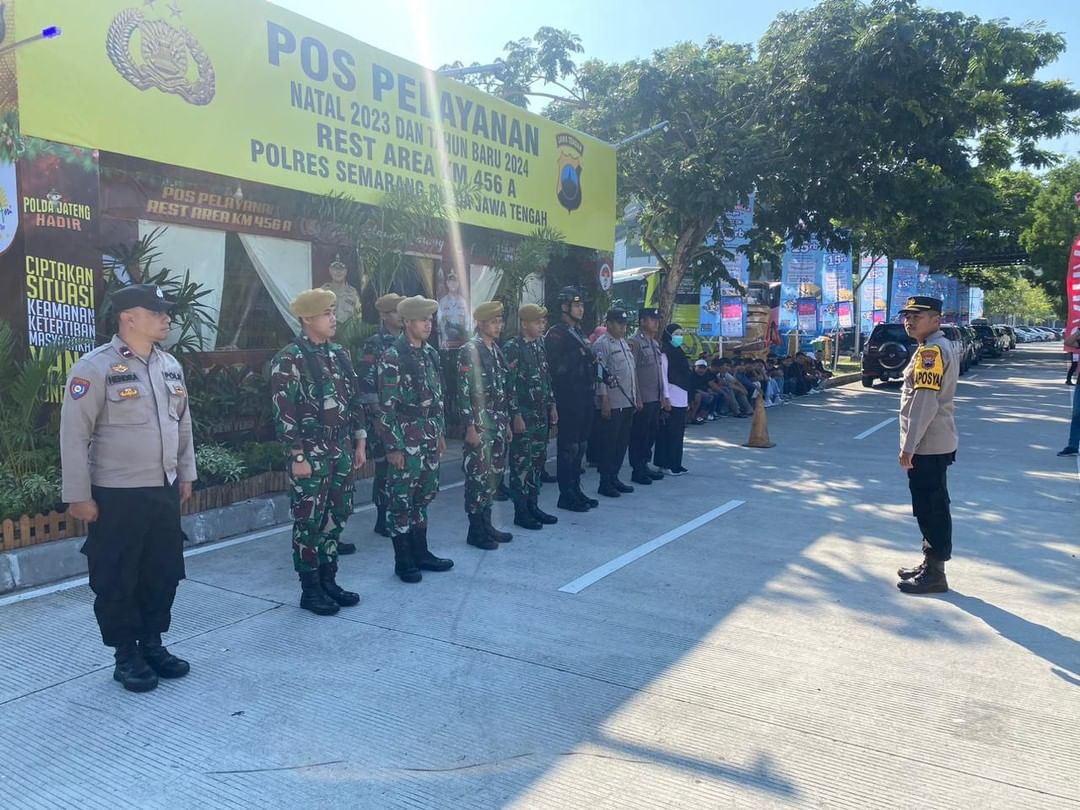 Semarang. Personel Batalyon Arhanud 15/DBY bersama Polri dan Instansi lainnya yang tergabung dalam Operasi Lilin Candi 2023 melaksanakan pengaman diberbagai titik Rest Area dan Exit Tol di daerah Jawa Tengah. Salah satunya di Rest Area KM 456 A Pabelan Ungaran. Senin, 25/12/2023)