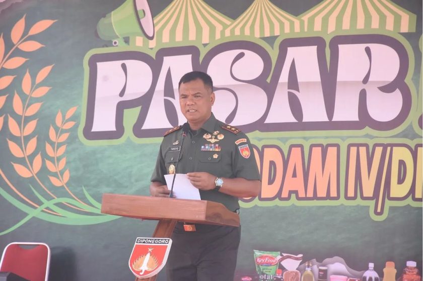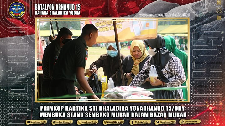 Semarang – Primkop Kartika S11 Bhaladika Yonarhanud 15/DBY membuka stand sembako murah dalam Bazar Murah Kodam IV/Diponegoro di Lapangan Garnizun, Kembangsari, Kecamatan Semarang Tengah, pada Selasa (5/3/2024).