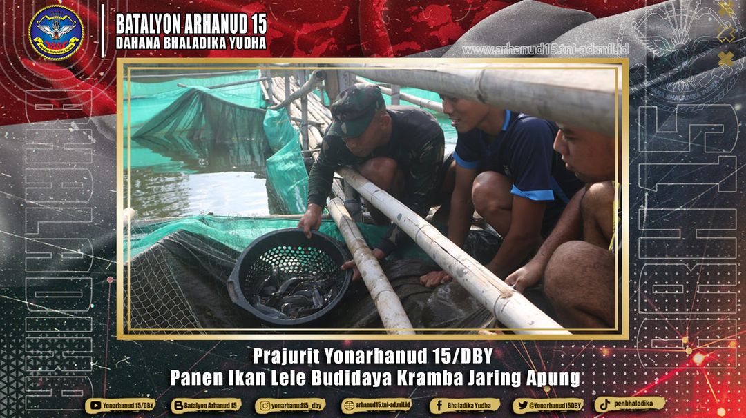 Semarang. Batalyon Arhanud 15/DBY berhasil menikmati hasil panen budidaya ikan lele dari program ketahanan pangan yang dilaksanakan di kolam ikan Yonarhanud 15/DBY. Selasa (20/2/2024) Hasil panen kali ini merupakan panen yang keempat kali sejak awal pembuatan keramba ikan dan budidaya ikan yang dilakukan, ikan lele yang dipanen yaitu berumur kurang lebih 100 hari, rata-rata perkilonya mencapai 8 ekor. Pembudidayaan ikan lele tersebut dilakukan sebagai upaya untuk meningkatkan bahan pangan Prajurit. Komandan Batalyon Arhanud 15/DBY Mayor Arh Reindi Trisetyo Nugroho menyampaikan rasa bangganya terhadap Prajurit Yonarhanud 15/DBY yang turut aktif dalam…