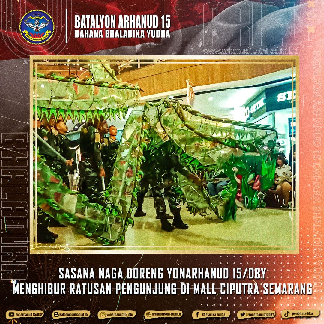 Semarang. Atraksi barongsai dan liong dari Sasana Naga Doreng Yonarhanud 15/DBY Kodam IV/Diponegoro meriahkan perayaan Tahun Baru Imlek 2575 Kongzili tahun 2024 menghibur ratusan pengunjung di Mall Ciputra Semarang. Rabu (21/2/2024)