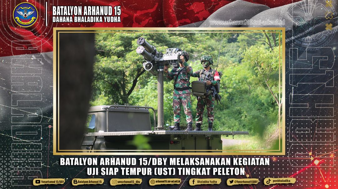 Semarang. Bertempat di Medan Latihan Drill Teknis dan Taktis Kodam IV/Diponegoro Meteseh Semarang, Yonarhanud 15/DBY melaksanakan Uji Siap Tempur (UST) tingkat Peleton yang dilaksanakan pada tanggal 2 sd. 4 April 2024. Kamis (4/4/2024) Latihan yang melibatkan 3 Baterai yaitu Baterai Astra, Baterai Bajra dan Baterai Catra dengan mengerahkan Meriam 57 MM S60 T/AKT dan Rudal Starstreak MMS dan LML, serta alat perlengkapan tempur lainnya. Selain melatih keterampilan pasukan, kegiatan tersebut juga bertujuan menguji kesiapan tempur satuan setingkat Peleton dalam melaksanakan operasi. Penyelenggaraan UST (Uji Siap Tempur) tingkat peleton Yonarhanud 15/DBY…