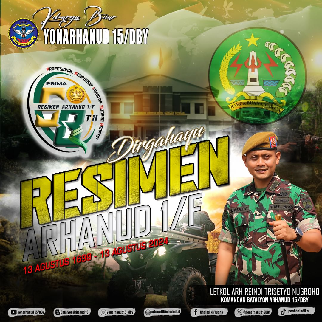 DIRGAHAYU RESIMEN ARHANUD 1/FALATEHAN13 AGUSTUS 1966 – 13 AGUSTUS 2024 “RAKCA BHUANA YAKCA”