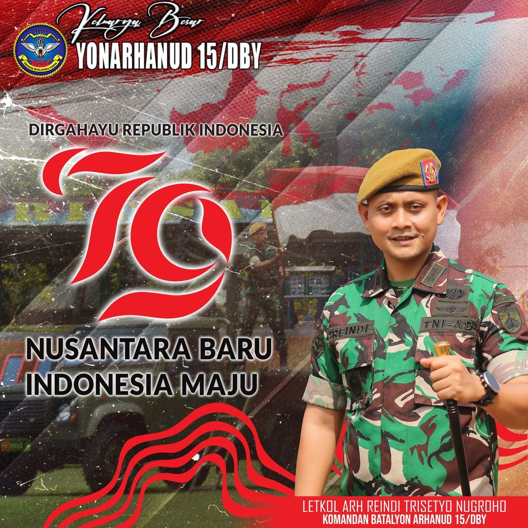 Semarang. Yonarhanud 15/DBY Upacara memperingati Hari Ulang Tahun Kemerdekaan Republik Indonesia yang ke-79 bertempat di Mako Yonarhanud 15/DBY, selaku Inspektur Upacara Wakil Komandan Yonarhanud 15/DBY Kapten Arh Yudha Putra Permono, S.S.T.Han dan diikuti oleh seluruh personel Yonarhanud 15/DBY dengan tertib dan khidmat. (Sabtu 17/8/2024) Adapun upacara detik-detik Proklamasi tahun ini mengusung tema “Nusantara Baru, Indonesia Maju.” Momentum bersejarah ini melambangkan transisi perpindahan ibu kota, sekaligus keberlanjutan pemerintahan ke pemerintah yang baru nanti. Peringatan hari ulang tahun kemerdekaan, pada hakekatnya merupakan bentuk penghormatan sekaligus penghargaan kepada para pejuang pendiri Republik, yaitu…
