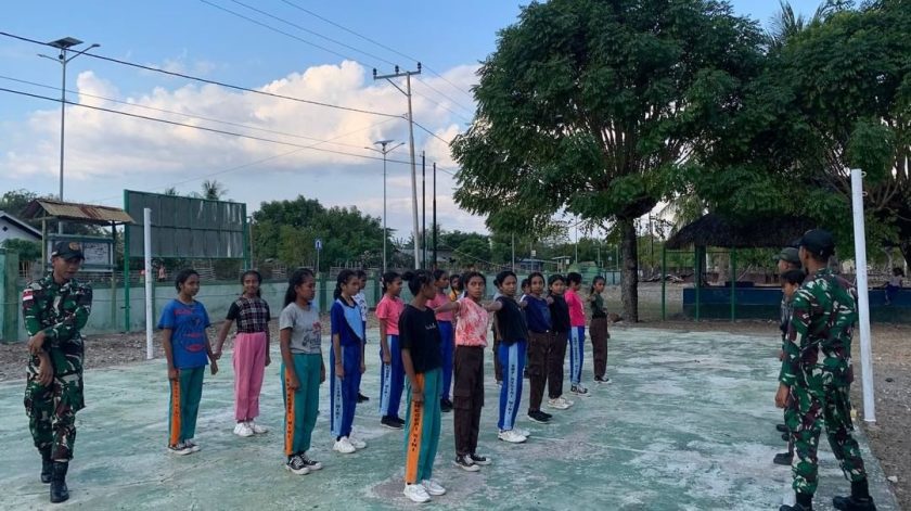 Wini – Anggota Pos Wini Satgas Pamtas RI-RDTL memberikan pelatihan PBB kepada siswa SMP Negeri Wini sebagai salah satu pembinaan Bela Negara, melatih jiwa korsa serta kedisiplinan pada para generasi penerus Bangsa bertempat di SMP Negeri Wini, Desa Humusu C, Kec. Insana Utara, Kabupaten Timor Tengah Utara, Nusa Tenggara Tim. Kamis (26/9/2024).