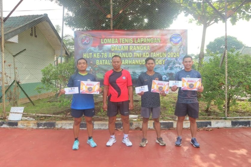 Semarang, Dalam rangka memperingati Hari Ulang Tahun (HUT) ke-78 Arhanud TNI AD, Yonarhanud 15/DBY menggelar berbagai lomba Olahraga Umum(Oraum) antar Baterai, diantaranya adalah lomba Tenis Lapangan yang gelar di lapangan tenis Yonarhanud 15/DBY, Kamis, (7/11/2024).
