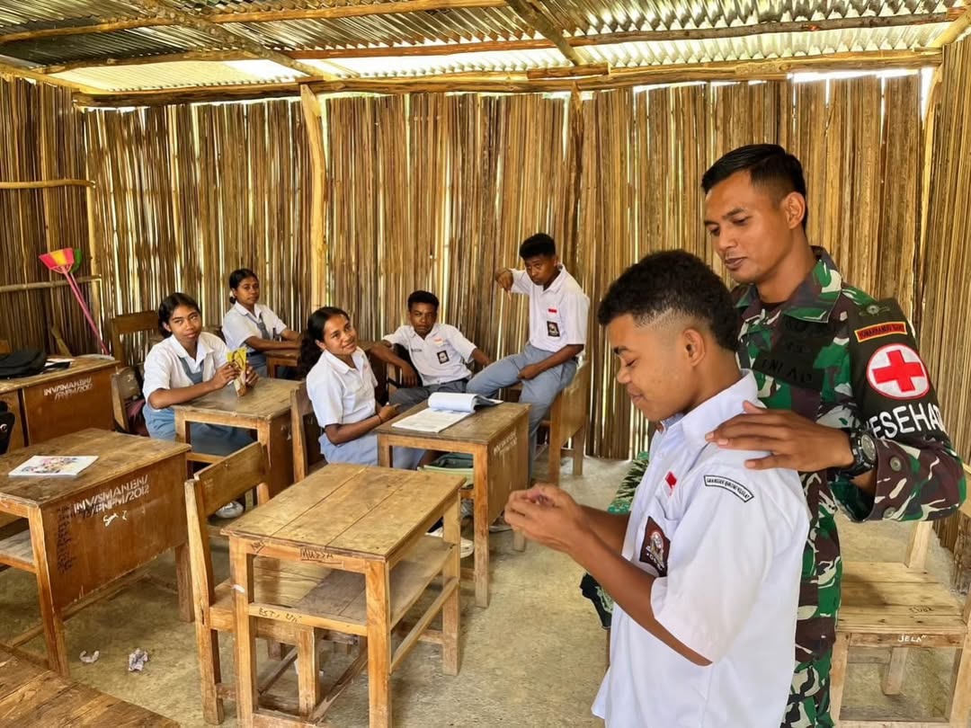 Kabupaten TTU, 26 November 2024 – Satgas Pengamanan Perbatasan (Pamtas) RI-RDTL Sektor Barat Yonarhanud 15/DBY terus menunjukkan komitmennya dalam mendukung masyarakat di wilayah perbatasan. Kali ini, melalui kegiatan anjangsana, Wakil Komandan Pos (Wadanpos) Baen, Sertu Anton Abi, bersama empat anggota Satgas lainnya mengunjungi SMAN Bikomi Nilulat di Kecamatan Bikomi Nilulat, Kabupaten Timor Tengah Utara (TTU).