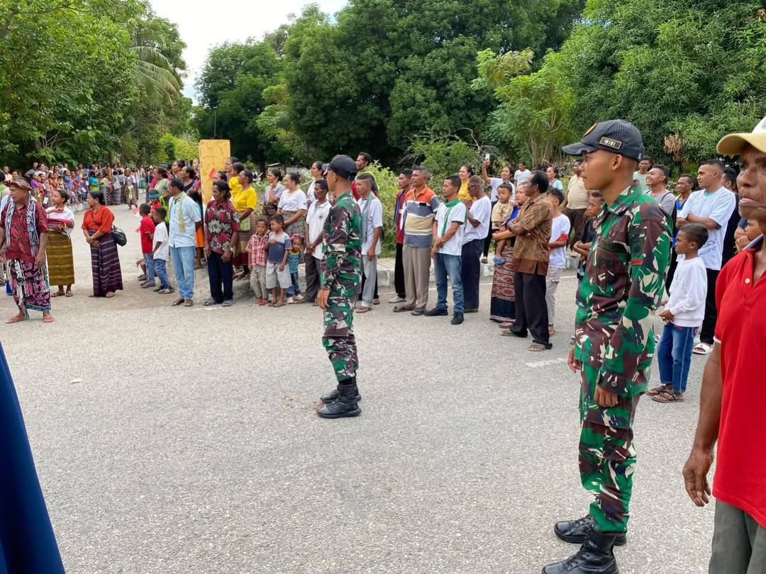Humusu Wini, Kabupaten Timor Tengah Utara – Sebagai bagian dari dukungan terhadap kegiatan masyarakat dan pendidikan, Satgas Pamtas RI-RDTL Sektor Barat Yonarhanud 15/DBY Pos Wini, dipimpin oleh Serda Pandu Mahendra bersama empat anggota, melaksanakan kegiatan pendampingan kepada mahasiswa dari Ilmu Filsafat Universitas Katolik Widya Mandira (ISFIT) di Gereja Fransiskus Xaverius, Desa Humusu Wini, Kecamatan Insana Utara, Kabupaten Timor Tengah Utara.Sabtu(30/11/24)