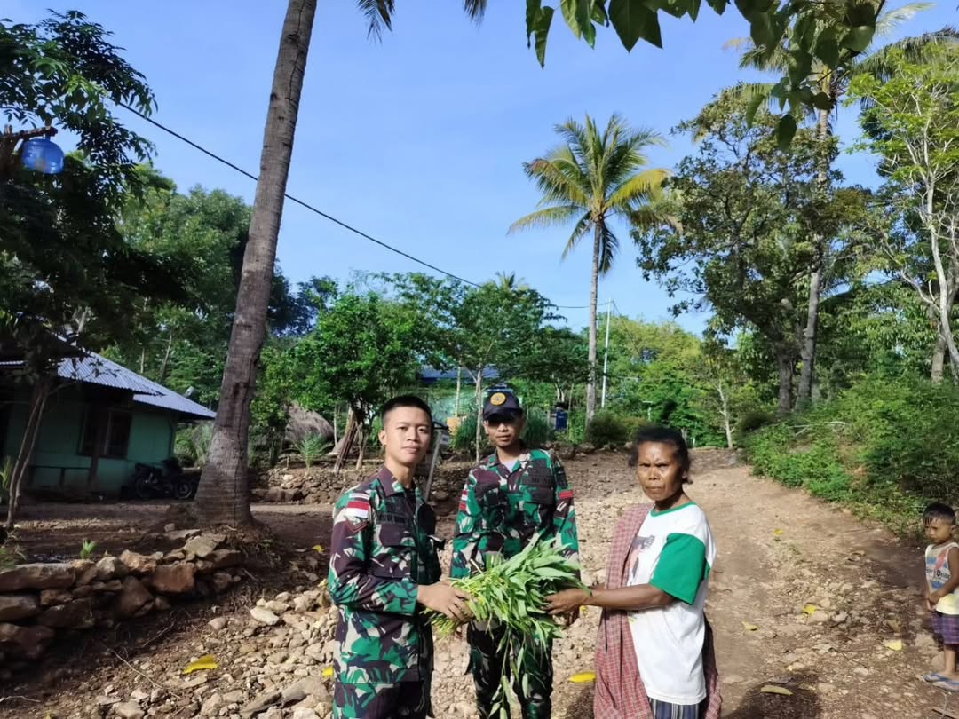 Satgas Pamtas RI-RDTL Sektor Barat Pos Nino Bagikan Hasil Kebun untuk Warga Dusun Nino