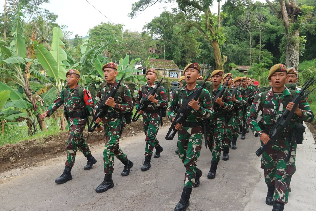 Magelang. Satu Peleton Batalyon Arhanud 15/DBY yang dipimpin Muhammad Nursyahbani, S.Tr. Han. mendapat kehormatan sebagai satuan Peleton pendamping dari Satuan Tempur Yonif 408/Suhbrastha dengan berjalan kaki menempuh jarak 10,1 Km dari SDN Pagergunung Kec. Ngablak Kab. Magelang menuju lapangan Banaran Kec.Grabag Kab. Magelang. Rabu, 18/12/2024.