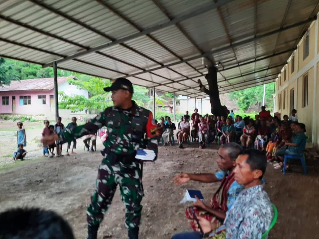 Bikomi Nilulat, 16 Desember 2024 – Satgas Pamtas RI-RDTL Sektor Barat Yonarhanud 15/DBY melalui Pos Nino yang dipimpin oleh Serka Didik Kurniawan bersama dua anggota lainnya melaksanakan kegiatan pembagian Alkitab kepada jemaat Gereja Katolik Stasi Inbate di Desa Inbate, Kecamatan Bikomi Nilulat, Kabupaten Timor Tengah Utara, Senin (16/12).