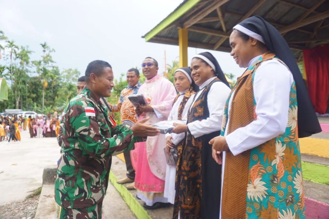 Kapten Arh Kasman Efendi menyampaikan, “Kehadiran kami adalah wujud nyata dukungan Satgas Pamtas dalam mempererat hubungan dengan masyarakat perbatasan, khususnya dalam bidang keagamaan. Kami berharap perlengkapan yang diberikan dapat bermanfaat bagi umat Katolik di wilayah ini.”