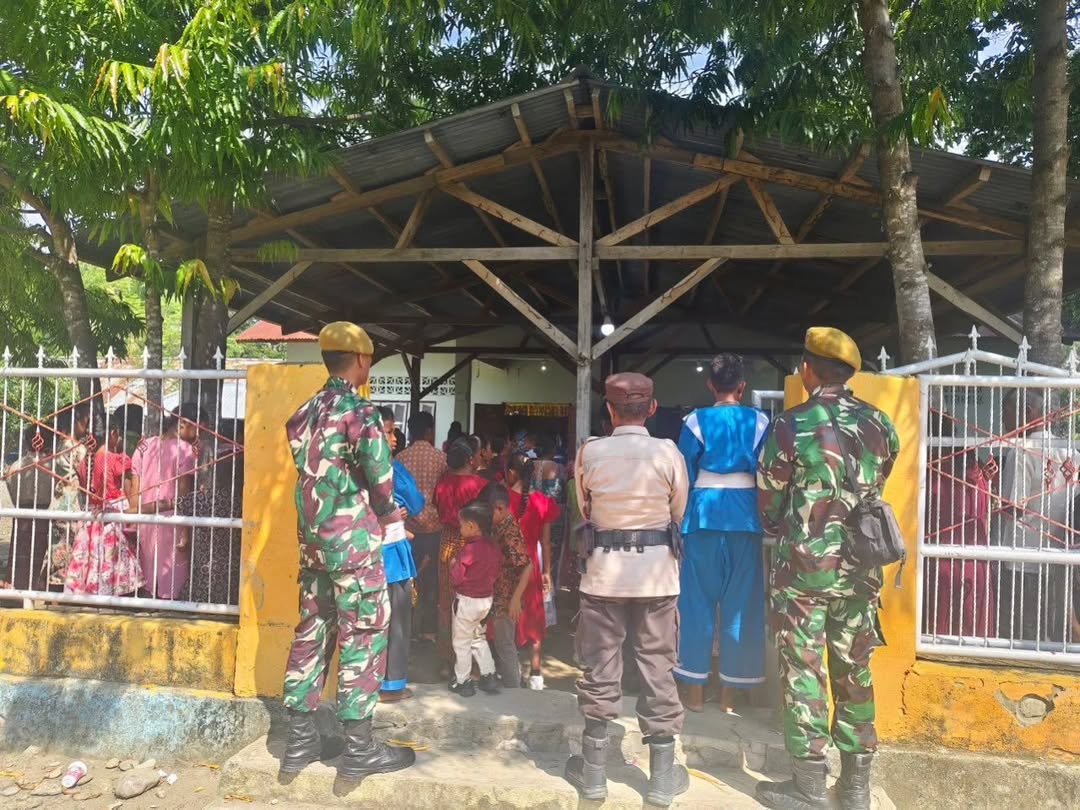 Kupang, NTT – Dalam semangat kebersamaan, personel Satgas Pengamanan Perbatasan RI-Timor Leste (Pamtas RI-RDTL) Sektor Barat Yonarhanud 15/DBY dari Pos Oepoli Sungai dan Pos Oepoli Pantai berkolaborasi melaksanakan pengamanan perayaan Natal di Paroki Santa Maria, Desa Taloi, Kecamatan Amfoang Timur, Kabupaten Kupang, Minggu (29/12). Pengamanan ini dilakukan untuk memastikan kelancaran dan keamanan ibadah Natal di gereja tersebut. Pos Oepoli Sungai dipimpin oleh Serda Praba bersama tiga anggota lainnya, sementara Pos Oepoli Pantai dipimpin oleh Serda Asrobin dengan tiga personel. Keduanya bekerja sama menjaga ketertiban secara bergantian selama kegiatan misa berlangsung.…