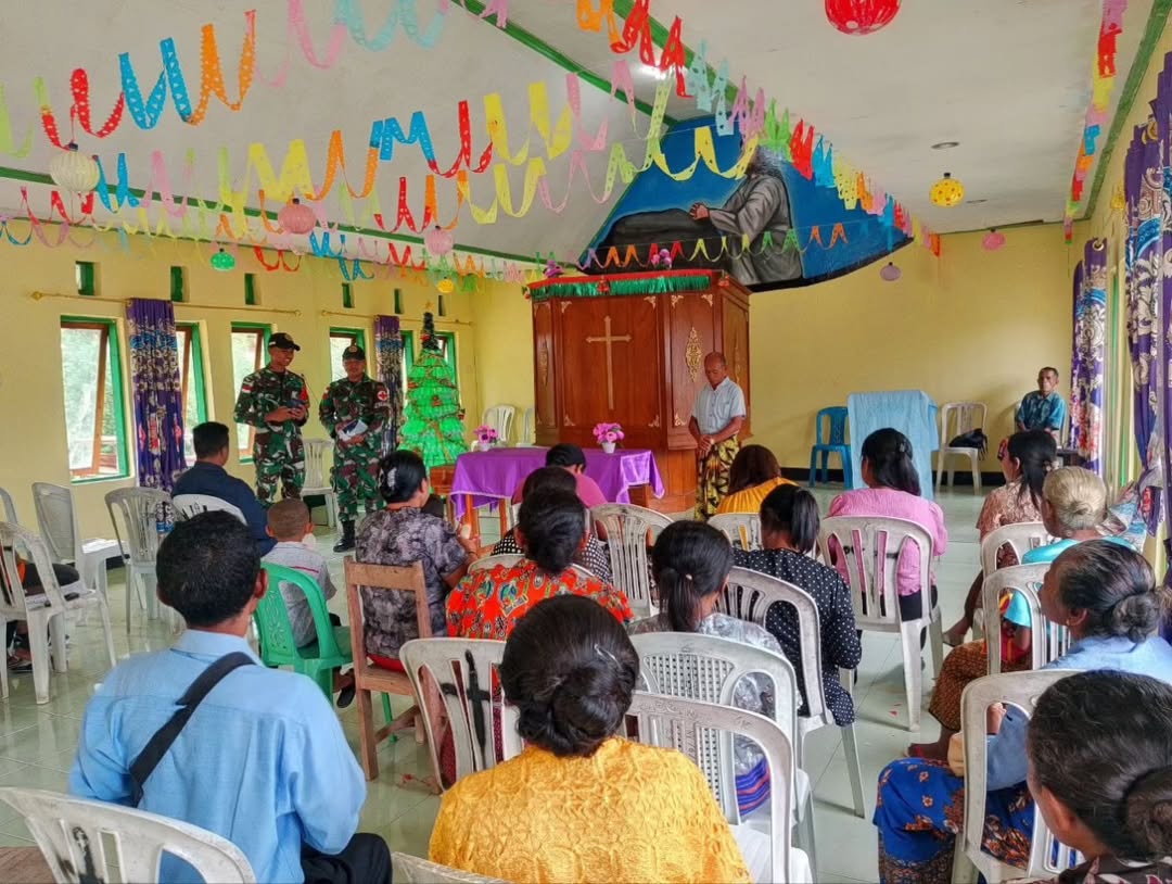 Haumeniana, 27 Desember 2024 – Satgas Pamtas RI-RDTL Sektor Barat Yonarhanud 15/DBY Pos Haumeniana, yang dipimpin oleh Serda Joni Butar Butar (Wadan Pos Haumeniana) bersama tiga anggota, melaksanakan giat pengamanan ibadah di Gereja Protestan GMIT di Desa Haumeniana, Kecamatan Bikomi Nilulat, Kabupaten Timor Tengah Utara (TTU). Kegiatan ini juga diisi dengan pembagian Alkitab kepada warga jemaat sebagai bentuk dukungan terhadap kehidupan rohani masyarakat. Kegiatan pengamanan dilakukan untuk memastikan kelancaran dan kenyamanan ibadah jemaat GMIT. Selain itu, pembagian Alkitab dilakukan sebagai wujud perhatian Satgas terhadap kebutuhan spiritual masyarakat di wilayah perbatasan.…