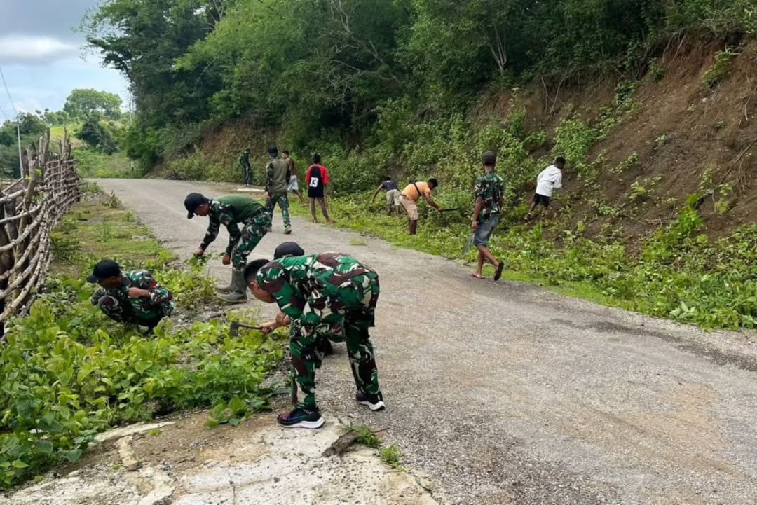 Timor Tengah Utara, 2 Januari 2025 – Dalam rangka mendukung kegiatan rutin masyarakat, Satgas Pamtas RI-RDTL Sektor Barat Yonarhanud 15/DBY dari Pos Nelu, yang dipimpin oleh Letda Arh Daniel Christoper bersama 10 anggota pos, melaksanakan karya bakti pembersihan jalan raya di Dusun Nelu, Desa Sunsea, Kecamatan Naibenu, Kabupaten Timor Tengah Utara (TTU). Kegiatan ini dilakukan bersama Karang Taruna Dusun Nelu, dipimpin oleh ketua karang taruna, Venus, serta para pemuda setempat. Dalam karya bakti tersebut, jalan sepanjang kurang lebih 1,5 km menuju Pos Nelu dibersihkan dengan memangkas semak belukar yang berada…