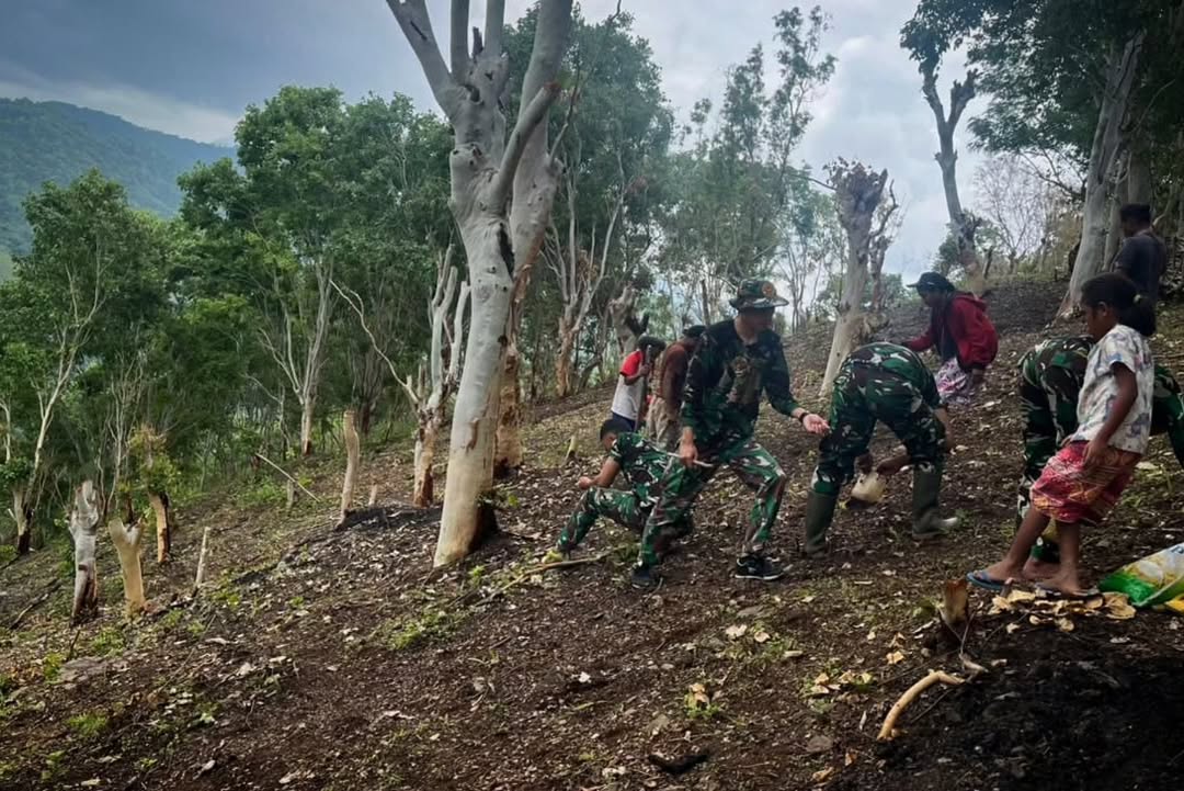Naibenu, 25 Januari 2025 – Dalam upaya mempererat hubungan dengan masyarakat perbatasan, anggota Satgas Pamtas RI-RDTL Sektor Barat Yonarhanud 15/DBY dari Pos Nelu kembali menunjukkan kepedulian melalui aksi nyata. Dipimpin oleh Wakil Komandan Pos (Wadanpos), Sertu Dikmanto, bersama tujuh anggota lainnya, mereka membantu menanam biji kacang tanah di kebun milik Mama Magnalena Bubun di Dusun Nelu, RT 11/RW 06, Desa Sunsea, Kecamatan Naibenu, Kabupaten Timor Tengah Utara (TTU). Kegiatan ini dilakukan sebagai bentuk dukungan Satgas Pamtas terhadap peningkatan ketahanan pangan dan kesejahteraan masyarakat di wilayah perbatasan. Dengan penuh semangat, para…