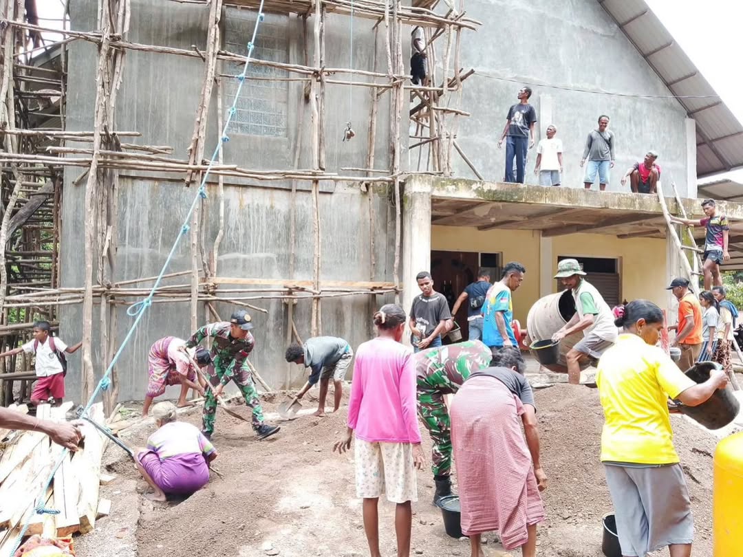Satgas Pamtas RI-RDTL Yonarhanud 15/DBY Pos Inbate Bantu Warga dalam Pembuatan Gapura Gereja