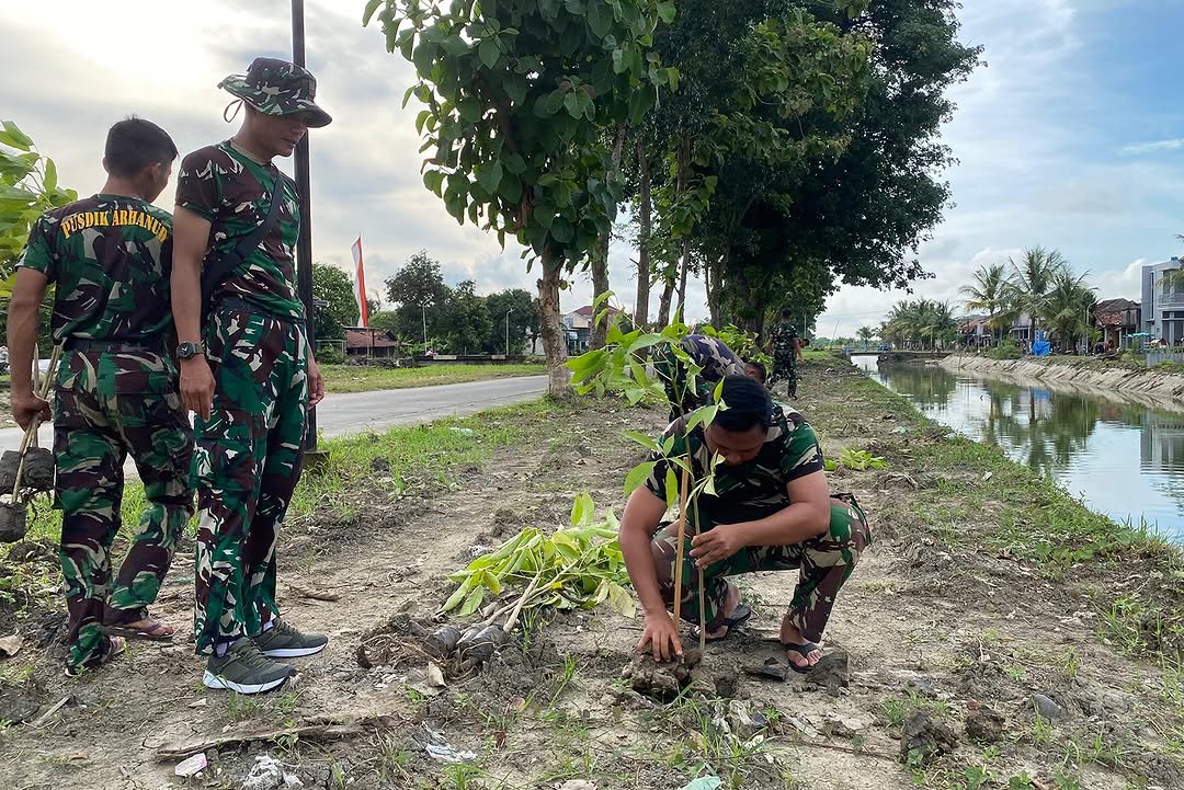Demak. TMMD Reguler Ke-123 Baru Resmi Dibuka, Prajurit Yonarhanud 15/DBY yang tergabung dalam Satgas TMMD Reg Ke-123 Kodim 0716/Demak langsung melaksanakan salah satu kegiatan dalam program TMMD Reg Ke-123 yaitu menanan 300 bibit pohon disepanjang jalan Karanganyar Mijen Desa Bandungrejo, Kecamatan Karanganyar, Kabupaten Demak, Rabu (19/02/2025). Bibit pohon yang ditanam pada kegiatan ini adalah bibit Pohon jati ,pucuk merah dan palem. Kegiatan penanaman pohon yang dilakukan oleh Satgas TMMD ini diharapkan memberikan dampak positif yang signifikan bagi lingkungan dan masyarakat. Pohon-pohon yang ditanam tidak hanya berfungsi sebagai penghijauan tetapi juga…