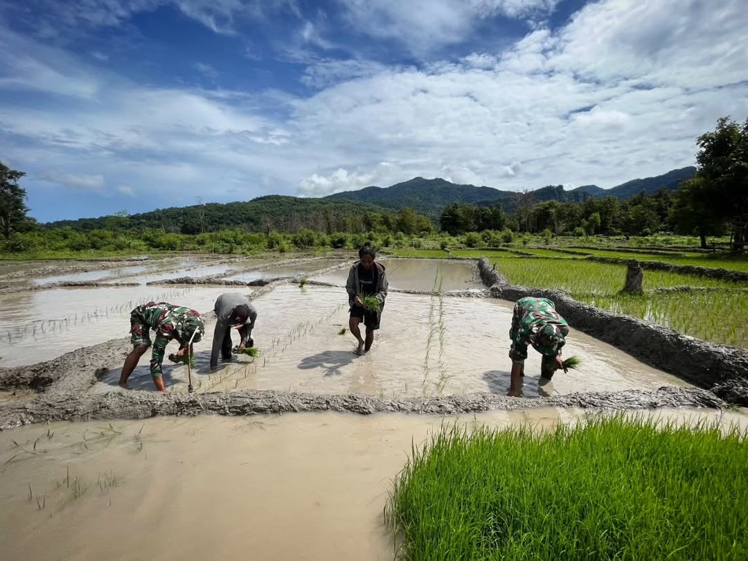 Kegiatan ini dipimpin oleh Praka Edi Subagio bersama tiga orang anggota Pos Oepoli Tengah. Dengan turun langsung ke sawah, mereka membantu warga dalam proses tanam padi sebagai bagian dari upaya mendukung ketahanan pangan di wilayah perbatasan.