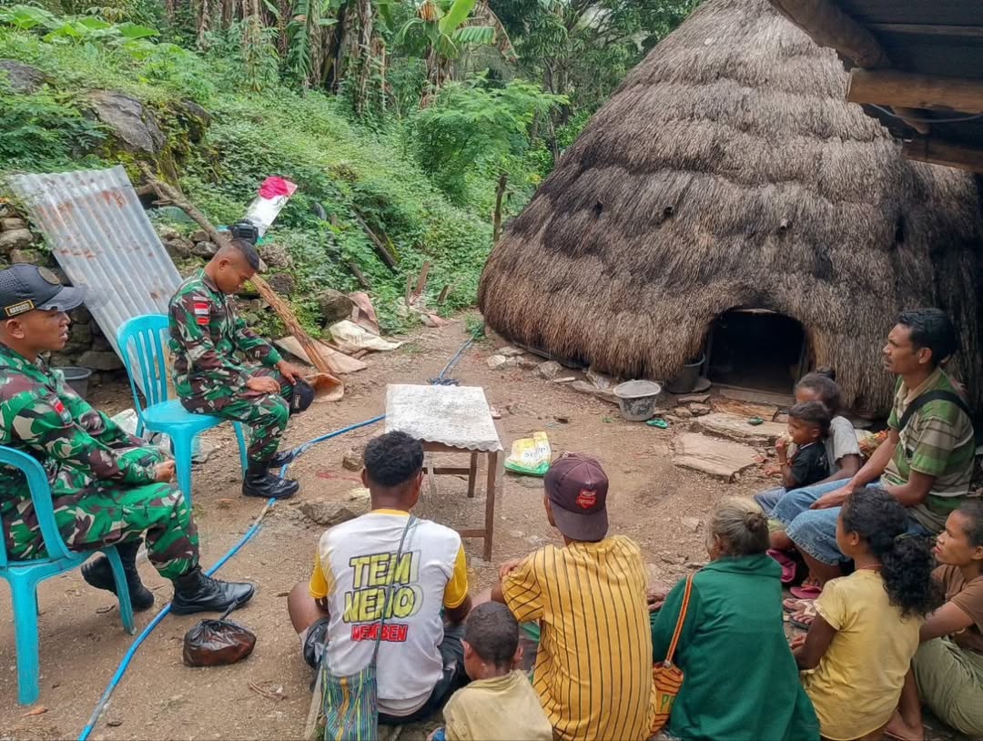 Satgas Pamtas Statis RI-PNG Yonif 122/TS Pos Kalibom melalui kegiatan Pelayanan Kesehatan dan Pengecekan kesehatan keliling bagi masyarakat di Kampung Tasinifu Kec. Mutis Kab. TTU.